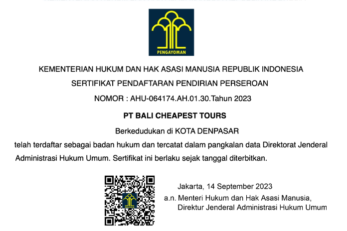 When planning your Bali trip, it's crucial to ensure that you choose a reputable and legally compliant tour operator. Bali Cheapest Tours stands as a beacon of trustworthiness, offering a range of affordable and memorable experiences while holding all the necessary licenses and complying with the regulations set forth by the Indonesia government.